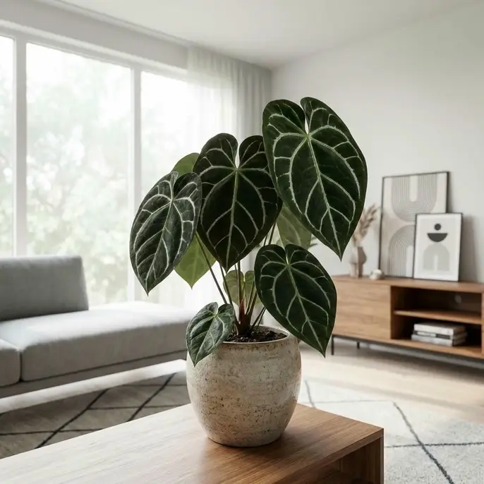 - Leaf Direction: Don't rotate it too often. Unlike Alocasias, Anthuriums orient their leaves to the light source once and then harden. If you rotate it, it wastes energy trying to turn back.