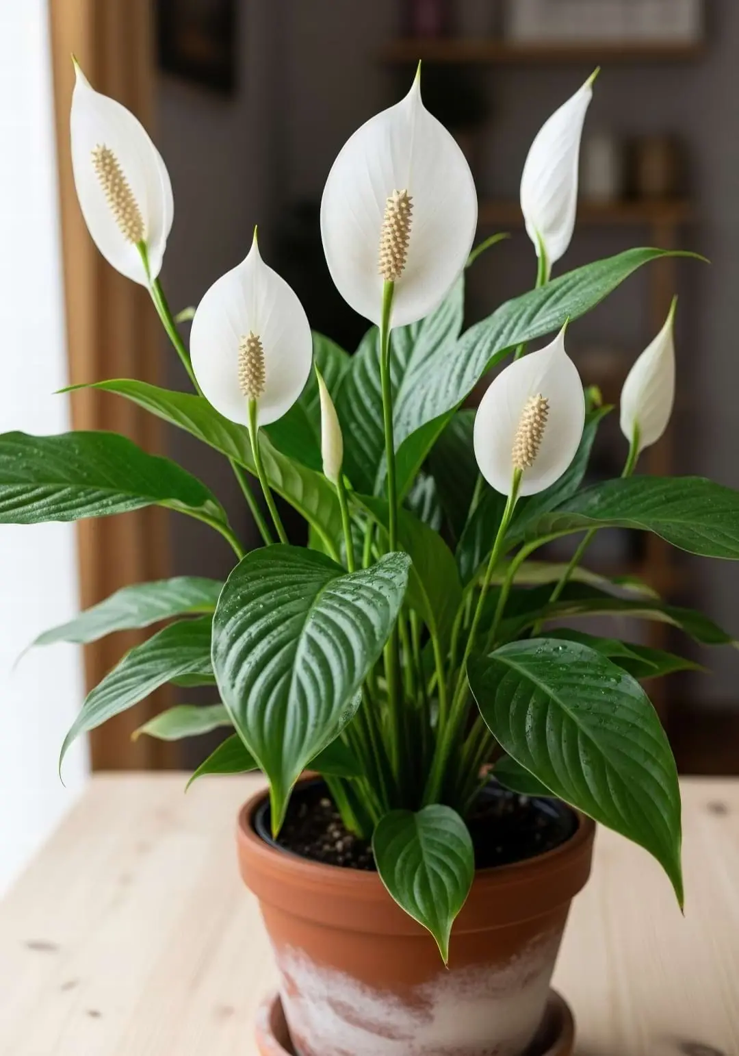 π‘ Light for Flowers: Remember the rule: low light for foliage, bright (indirect) light for flowers. If you want those elegant white spathes, give your plant a prime spot near a window but out of direct sun.