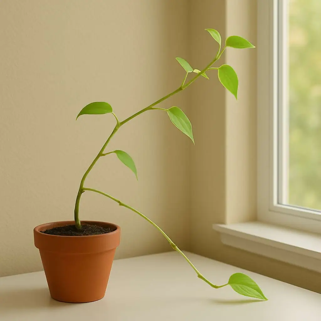 How to check: The signs are unmistakable. Long gaps (called internodes) between leaves. Small, pale new leaves. A weak overall structure. The entire plant will physically lean in the direction of the window.