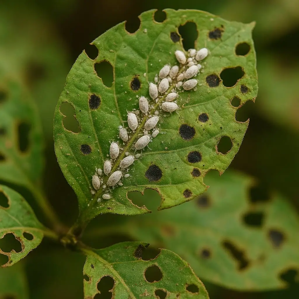 Pest damage generally comes in two forms: sap-sucking, where pests drain the plant's fluids (causing stippling, yellowing, and sticky residue), and chewing, where they eat the leaves (creating holes).